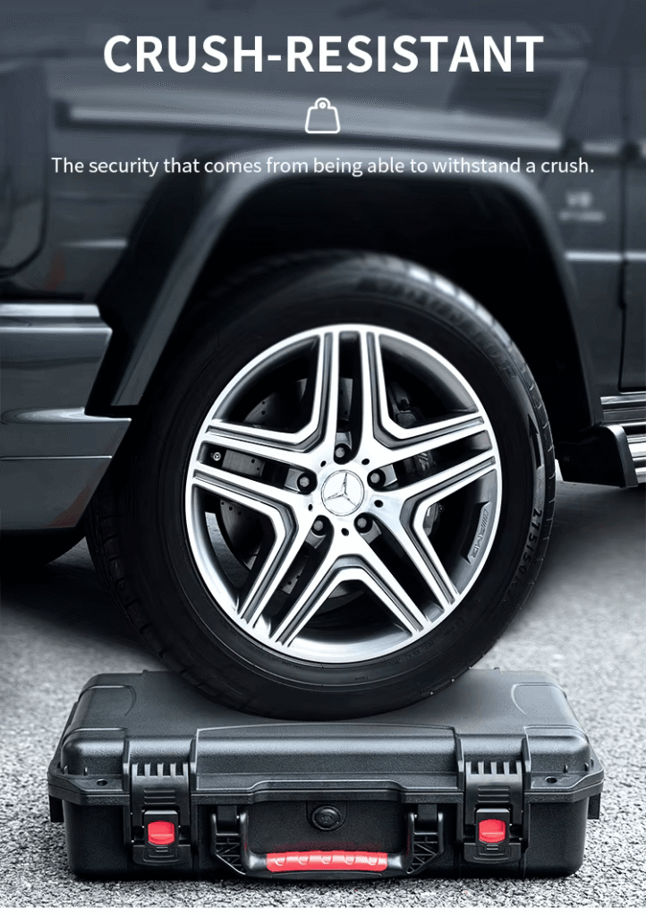 Este estuche está fabricado en plástico ABS de alta densidad, lo que garantiza una resistencia superior ante impactos, humedad o condiciones extremas. Su sellado hermético tipo IP67 asegura protección frente a salpicaduras y polvo.